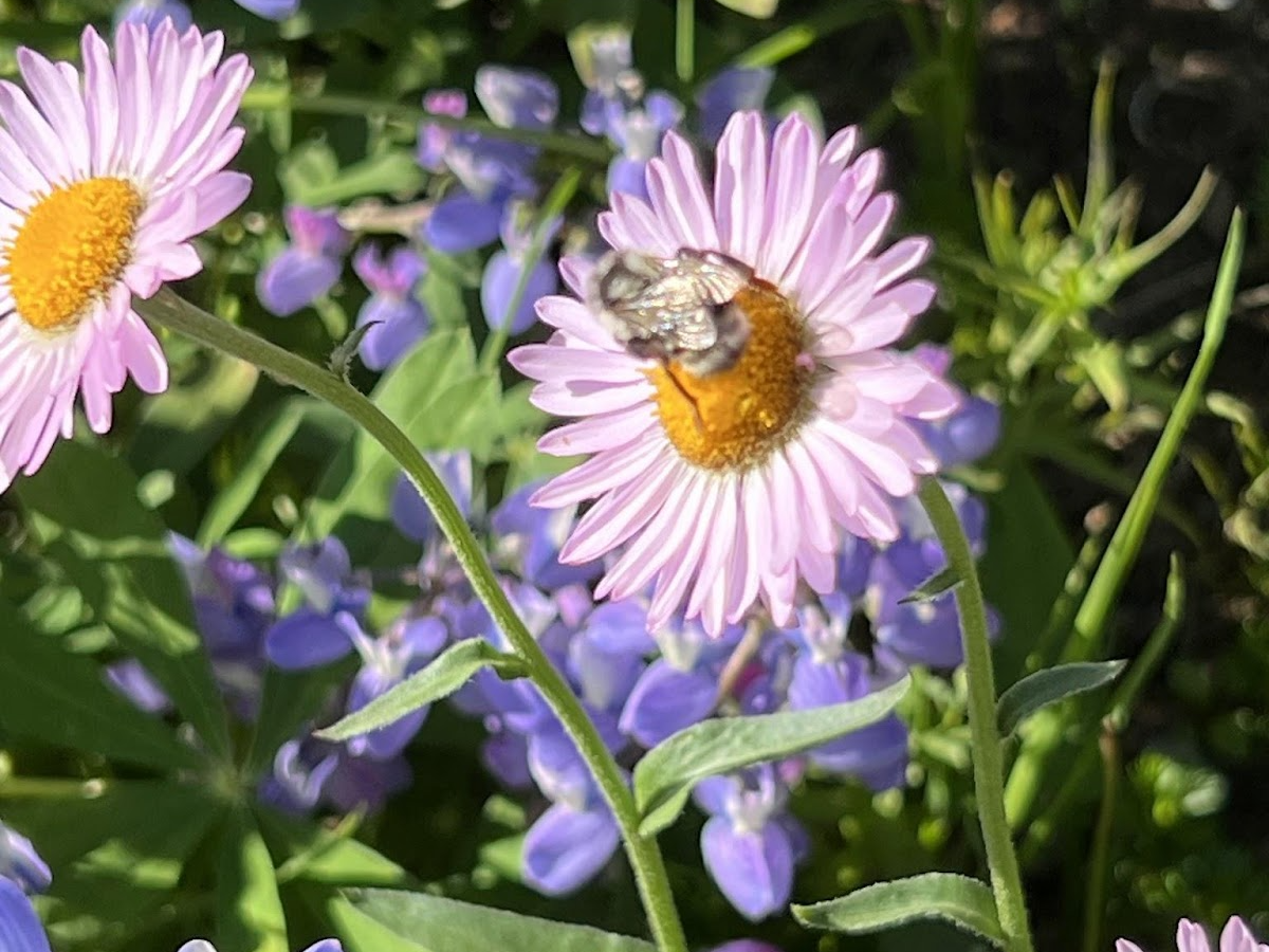 Then I saw her—a small bee settled completely on a pink daisy, her movements deliberate and unhurried. She wasn’t racing against time or trying to visit every flower in sight. Instead, she was fully committed to this one moment, this one bloom, working with a patience that seemed to match the flower’s own rhythm of opening and offering.